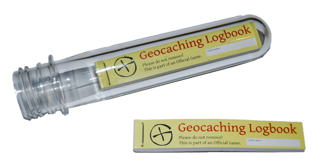 Text on cover: “Geocaching Logbook”. “Please do not remove! This is part of an Official Game.”