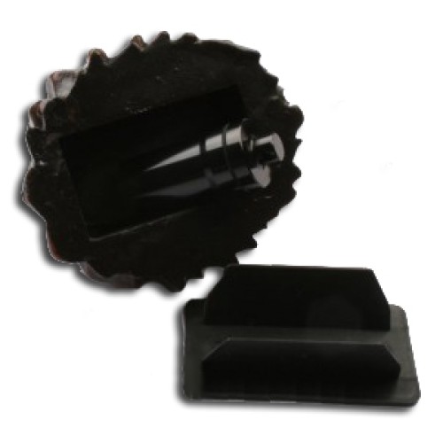 Dessa konstgjorda kottar är av plast och därför mycket hållbara. De är ca. 9 cm i diameter och 5 cm höga. På baksidan finns en text som säger att det är en geocache.