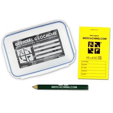 Behhållaren är 15,2 x 10 cm och levereras med en officiell geocache loggbok och penna.