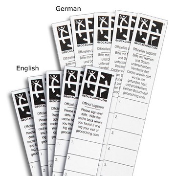 Den perfekta logg-remsan för att underhålla din cache. Den är gjord av ”Skriv i regnet papper” för att stå emot väder och vind. Varje remsa är 1,9cm x 24cm och rymmer 45 inlägg. Texten är på engelska.