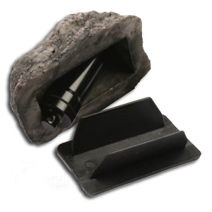 Dessa konstgjorda stenar är av plast och därför mycket hållbara. De är ca. 8 cm i diameter och 5 cm höga. På baksidan finns en text som säger att det är en geocache.
